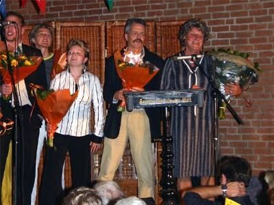Apart is dat tòch, dry kear utselde doën, mar dry kear anders. Ik doël op de BSA. Gisteravend hadden we de derde foarstelling en ik durf te stellen dat dizze derde aflevering tòp was. Wêr suks an leit? Ut publyk was gisteravend geweldech, sonder de mênsen dy't de earste twee kear weest binne te kort te doën. 'Lachpublyk', noemde Matthie Silvius ut. Un term út de toneelweareld. Matthie ( 'Molly') speult al jaren en sal wel gelyk hewwe. Ik fon ut gewoan 'lekker'. Hew dêrom al wear nocht an sumetéén. Na ouloop faak diskussy over ut Snekers. Is ut nou 'mênsen' òf 'meensen'? Sêge je nou 'seumers' of 'somers'. Gaan 'jim' òf 'jum ' fanavend naar de jaardach fan Frou De Jong. Eén ding is seker, Arno Brok, fynt Sneek nòch hieltyd 'ien grut waarm bad'. Dizze knuffelburgemeester bedoëlt fanself 'un groate warme sinken tobbe '. Hij krijt nergens in dizze revu-achtege jaardach op syn soademiter. Dat Brok un soad búten de deur is, laat de meeste Snekers koud. Behalve wethouwer Andries E. Dy was um foarege week rotskrokken toen ie de earste burger fan Sneek op ut stadhús teugen kwam. 'Wat doëne jou hier Arno?' had ie fraagd. De burgemeester had de Roaie wethouwer ankeken en seid 'Oh, ik bin hier op werkbesoek..!' Snekers houwe wel fan humor, en Brok is un flugge learling blykber.
