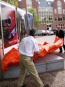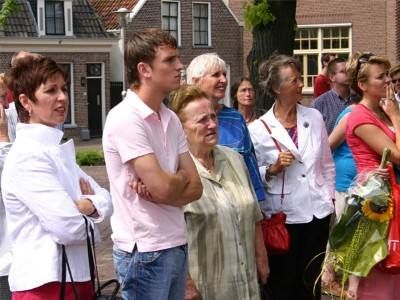 Su, ik gaan wear over tòt de orde fan de (sun-) dach. Paul was fanmòrren om halfnegen al op ut Oud Kerkhòf om te kiken hoe't de billbords der foar stonne. Ik twee uurkes later. Fantastise ervaring om te siën dat der allemaal mênsen foar de panelen staan om de foto's en de teksten te bekiken en te lezen. En úteraard fan kommentaar te foarsiën. De borden binne de earste nacht goëd deurkommen, gyn fernielings. Bin ik trouwens òk nyt bang foar, de skatejeugd is persoanlek op de hoogte brocht dat 'wij' hier dizze somer wear hange.