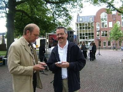 Fanmiddach foar ut earst dit seizoen an de lijn staan bij O.N.S. 1 Un hele aardege oefenpòt teugen un tè hard speulend Heerenveen ( am. )dy't met 6-0 ( kan der un doelpunt naast sitte ) wonnen werd. De sjarme fan su'n earste wedstryd na de somerstòp is de ontmoeting met Snekers dy't je un paar weken nyt siën hewwe. De fekaansyferhalen met stuk foar stuk ut thúskommen as hoogtepunt. De ferwachtingen foar ut nieuwe seizoen. De fermoeide koppen fan de échte Sneekweekfierders, su fan 'we binne hier wel, mar eigenlek wúden we òk wel even op bêd '. Ik hew se allemaal wear even observeard fanmiddach. C. òk, skaamteloas! Fanmòrren kreech ik de foto's met dêrop de Overhandiging fan de 2de Sneekerpannemannenerepenning "Sybold Hartkamp 24 juli 2003" an Burgemeester Arno Brok deur de Sneekerpannenmannen Hotze van Bekkum & Menno Kier Visser. Ut ferhaal achter dizze útreiking, gistermiddach op de Starttoren, is mij nòch nyt helemaal dúdelek. Ik weet wel dat Menno gister un prachtech moai ferhaal had. Orale literatuur fan un letterlek en figuurlek hooch gehalte!