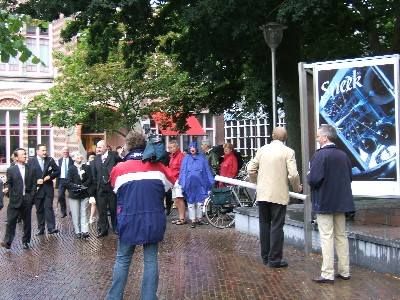 En òk Louis Westhof had syn bêst deen met un moai stukje in de El Zee. Al met al un moaie publisiteitsstunt. De jonges fan Interlinie hadden der foar sorgd, dat der un paneelgroate poster met de Japanse karakters over ut orizjinele Poëzy op Poaten paneel hongen wurde kon.. Super Jacob Kuipers! Henny van Goor het fanmiddach foto’s nommen fan de anbieding.