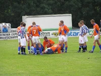 Wat ik gister al skreef, over ut feulste harde spel fan Heerenveen teugen O.N.S., wurde fandaach befestegd deur ut bericht dat Ton Haarman syn kútbeen broken het. De O.N.S-anfalsleider wurde gewoan fan achteren delsabeld, andere woarden hew ik der nyt foar. Ut meast idioate fon ik nòch dat Ton nyt met de brancard fan ut feld ging, mar strompelend met un pak iis, dat nòch wel, op syn onderbeen. Ut foetbalseizoen is wear lòs, behalve foar Ton, dy mut foarlopech even rustech an doën. Beterskap Haarman!