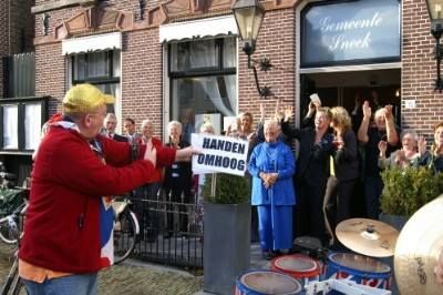 Margaretha Nellie Slippens-Poiesz ( 75 jaar jong ), sêch mar Greetje, is un levensgenieter fan ut súverste Groatsaanwater. Fanmiddach het Greetje as bysonder amtenaar fan de burgerleke staan fan de gemeente Sneek afskeid nommen fan dizze funksy. Su'n kleine dry dúzend huweleken het frou Slippens-Poiesz foltrokken. In de publykshal fan ut Stadhús was ut un prachtech ouskeidsfeest. Boade Froukje, en un kollega fan Greetje, waren tòp met un skitterend stukje over Greetje as amtenaar fan de burgerleke staan. Om halfses kwam de Blauhúster Dakkapel om Greetje un searenade te brengen. Ontroerende momenten, 100% 'Gefoël Sneek'!! Greetje hoart seker bij myn tòp 10 frouwen, un mêns su puer en su oprecht, un frou om fan te houwen. Un unyk mêns. Alle resepsygangers kregen fanmiddach un fers fan Greetje met naar hús: