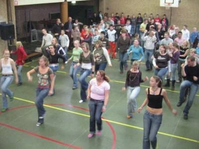 Fandaach hewwe mear as 260.000 skoalkynders in Nederlaan fijf minúten an ut daansen weest. Ok op oans skoal gingen fanmòrren de foetsjes fan de floer, onder leiding fan juf Tineke. Hast alle kyndes dy't anwezech waren deden met. Utselde gold foar de learkrachten... Twee jaar leden deden der 143.000 minsen met, dat rekord ging fandaach dus naar syn mallemoer. De aksy komt nou in Guiness Book of World Records. Kollega PeeHaa ( siën us op syn log: http://www.piethoutstra.tk/ ) maakte onderstaande foto.