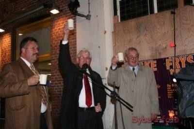 Wethouwer Tom Metz op ut feestje fan 8 november 2006: 'at ut un bitsje met sit kanne wij hier over un jaar de plannen realiseard hewwe...' ( foto's Sijbe Karspel )