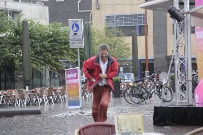 De foto’s fan ut draaiòrgelfeestje hew ik gister nyt kregen, eigenlek nyt su ferwonderlek, want de foto’s binne maakt deur un Liwwarder… Nou ja, ut was gewoan un bearegesellech feestje met òf sonder foto’s. Ok gesellech was Lekker Sneek gistermiddach. Onder ideale wearsomstannechheden besochten dúzenden minsen ut kulinêre spektakel om de Groate Kerk. Un deel fan de opbrengst gaat naar ut Hospice in Sneek. Hulde! De spesiale Oerol-act fan Wil Dijkstra dy’t un oade brocht an burgemeester Arno Brok was fan de bútenkategoary: tòppy!!! Der sit un groate kaans in dat Wil un útnoadiging krijt om in de Sneekweek op te treden. De Bogerman Bigband speulde fanmiddach de pannen fan ut dak. Ok foar Anne Oosterhaven dus un fear. Na ouloop was ut in de stad ( lees horekagelegenheden ) nòch smoardruk. Na dry kear is Lekker Sneek al nyt mear fut te denken, logys Sneek is Lekker! Fandaach gaan we naar Amsterdam, we salle de stad ferkenne op’e fyts. Uteraard wel met de auto naar Big City. Mòrren mear nijs fan un befoarecht mins!
