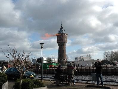 Fanmiddach het wethouwer Hans van den Broek ut offisjele startsein geven foar de bouaktiviteiten op'e Ylsterkade. Fanou de Watertoaren út ut jaar 1908 ( feestje dit jaar Henk G.?? ) kwamen abseilers op spektakulêre wize naar onderen. Fanou 40 meter hoogte overhandegden dizze luchtakrobaten wethouwer Van den Broek de nije naam fan ut gebied. Ylsterpoart ( òf was ut Poart fan Sneek ? ), as ut mij nyt mist. Nienke Hoekema maakte un prachtege foto fan dizze gebeurtenis.