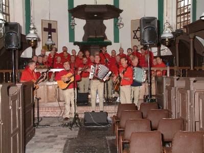 De mannen van het koor Rolling Home zingen de laatste tijd geregeld op verschillende locaties in de provincie zoals in theaters, festivals en natuurlijk wat heel bijzonder is om in de Gertrudiskerk van Lytsewierrum te zingen.
