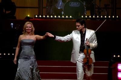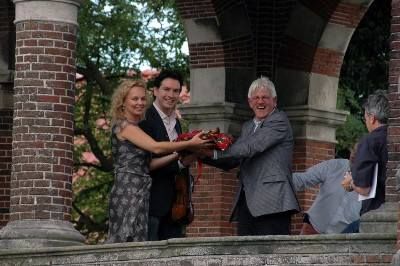 “ Ik heb nu al ontzettende veel zin in het concert van volgende week. Reken maar dat de vonken er vanaf zullen spatten ”, su liet orkestleider, dirigent, fioalsoalist en komponist Guido Dieteren wete. En Wendy? Sij straalde fan oar tòt oar. Inderdaad ut kyn het un engelachtege útstraling. Miskyn had Ben van der Knaap dêrom wel su'n hemelse blik in de ogen fanmiddach...