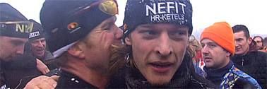 Sjoerd Huisman krijt un krúpke fan syn ploechgenoat Erik Hulsebosch