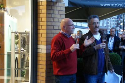 Na de stienlêging bin ik naar hús gaan om mij in alle stilte foar te bereiden op myn toespraak tidens de plechtechhyd fan Leo Poiesz syn kremasy. Dy toespraak hew ik an ut begin fan de middach houden in ut krematoarium de Schoterhof. Ut was goed om te doën, mar dit is nyt ut plak om hier ferder over te skrieven. Nyt allienech de family ferliest met Leo un bysonder mins, ok in de stad is ut stil nou’t Leo nyt mear onder oans is. Mar fergete salle we hem noait. Na de plechtechhyd kregen we dan ok koffy met…un Broadsje Knak! Fanavend dan de ( her-) opening en de ontbloating fan de poëzystien foar ut pand fan SIPKE-1890. Ut jaartal geeft ut oprichtingsjaar an fan de firma. Un groate ear om foar dizze ouwe Sneker middenstaansfamily un fers te skrieven dat nou in Belgys hardstien ferankerd is. Moai was ut dat de buurman en learmeester fan Sipke Dijkstra , Wouter Zandstra ( ‘ fan de skaatsen je ’ ) anwezech was. Haf gaf nòch un heel dúdelek ekonomy-leske. “ Sipke en Eddy, ut is nyt su moeilek om goëd saken te doën. Je mutte altyd duurder ferkope as wêr’t je ut foar inkocht hewwe. Teugenwoardech binne der tefeul ondrnimmers dy’t de begrippen in- en ferkoop deur mekaar hale en dan komme je in de problemen! ”