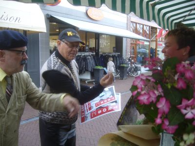 Heel wat BS'ers kregen de rútbiljetten fan Jan & Bertus in de hannen drukt. Uteraard met ut noadege kommentaar. Omdat de gefestegde politieke partijen ut lêge late ( ' ut is één groate luchtbel...') springe de RKP en TROS in ut fakuüm dat hieltyd mear ontstaat. Dat is dan ok de groatste reden dat beide mannen foar hun self begonnen binne. De politike karafaan begon foar de 120 jarege winkel fan SIPKE-1890, dêr't kommentaar leverd wurdde op de stien. " Och hearken nòch an toe, Sipke staat der in levende lijfe bij en tòch al un ' rust in peace '!" Jan ferklaarde dat na ut lezen fan de titel fan ut fers RIP-KE. Hij had de goeie bril nyt op en las foar de S un R...