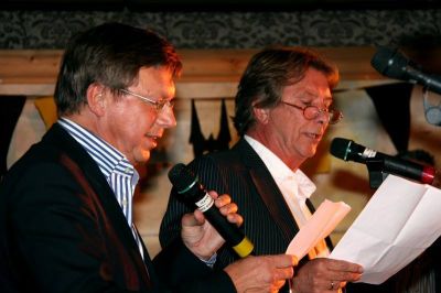 De tiende edisy fan de Bonte Sneker Avenden is gister un daverend feest wurden, nyt in ut laaste plak deur un optreden fan burgemeester Hayo Apotheker tegare met Kees Poiesz. De ferrassingsact fan de Sneker burgerfader was bij un klein ploegje bekend, mar nyt bij de hoofdròlspeulers. Oarspronklek sú wethouwer Jan Bargboer met Apotheker un oade an Heabeltsje de Jong brenge, mar deur sykte fan Bargboer kon dat spitechgenoech nyt deurgaan. De tekst fan Bargboer en ut idee was té moai om fare te laten. Met un petit comité hewwe wij lichte druk op Apotheker útfoerd en toen was hij ok gau bereid om met te doën, mits hij steun krije sú fan Kees Poiesz.