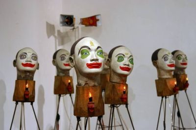 Nyt allienech de faste kolleksy’s binne ut besien mear as weard, ok de oversichtstentoanstelling fan de Indonesise kunstenaar Heri Dono het groate indruk op mij maakt. Wat un fameuse kunstenaar is dizze man. “ Met zijn schilderijen, beelden en installaties geeft hij een kritische en vaak humoristisch commentaar op actuele, politieke en maatschappelijke problemen in zijn land. Nooit eerder was een overzicht van zijn oeuvre in Nederland te zien ”, wurdt dizze tentoanstelling anprezen. Ut is dizze week foar ut laast dat de oversichtstentoanstelling nòch te sien is. We waren der dus moai op tiid bij… Ferdere info dy’t ik over ut wrk fan dizze kunstenaar las staat hieronder: