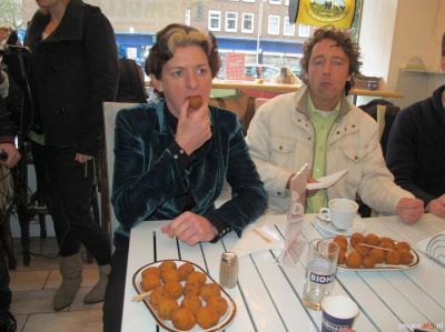 Beloofd is beloofd, nòch un blogje over de Groate Stad. Alle kearen wear at ik út Amsterdam kom, sit de kòp fol met indrukken. Ut is un folkomen mar dan ok folkomen andere leefweareld as hier in Sneek laat staan op ut plattelaan. Ik fraach mij wel us ou hoe’t minsen dy’t geboren en foar un gedeelte getogen binne in Mokum hun hier in Fryslaan foele mutte. At je leefweareld anders is sal je belevingsweareld ok anders weze. Wat ik ut meast fassinearende an Amsterdam fyn binne de minsen. Op su’n realatyf klein stukje Nederlaan sufeul ferskillende minsen kwa úterlek en kultuur. De Dappertjesmarkt: prachtech, krekt un faas fol met ferskillende bloemen! De Kalverstraat, de Dam, ut is aardech mar ut haalt ut nyt bij de grachten en de Negen Straatjes. Soek dat laaste gebied mar us op in un reisgids over Amsterdam. Kiek in Sneek hewwe wij de Korenbloem, mar at we in de Groate Stad binne is un besoekje an Bakkerij de Pompadour faste prik. Ut is dêr un lust foar ut ooch en ut sit der heel noflek in de tearoom. De prizen binne belachlek hooch foar un taartsje, € 5 ut gebakje. An de andere kant ut is pure ambachtleke keunst en dan mutte je nyt janke dat ut de folgende dach wear stront is. Want dat is ok ut lòt fan ut meast eksklúzieve eten.