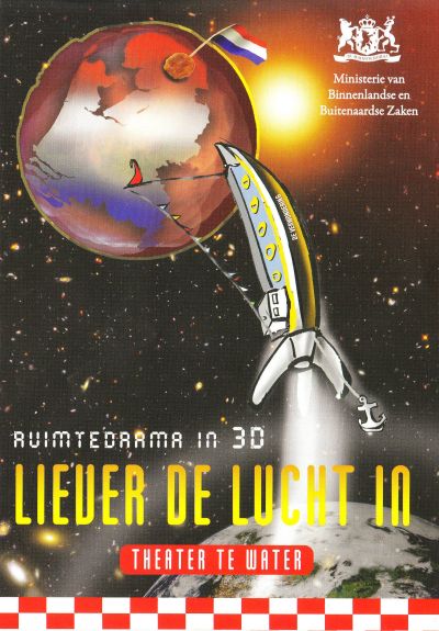 Fanavend naar de teaterfoarstelling Liever de lucht in. Ik bin één fan de fijfendertechhonderd gelukkege Nederlanners dy't selekteard is om met te doën an un bijsonder projekt fan Binnenlaanse en Bútenaardse Saken ( met medewerking fan Defênsy ). Deur myn deelname help ik Nederlaan feileger te maken, foar nou en foar de toekomst. Moaier beslút fan de week kanne je je nyt wênse!