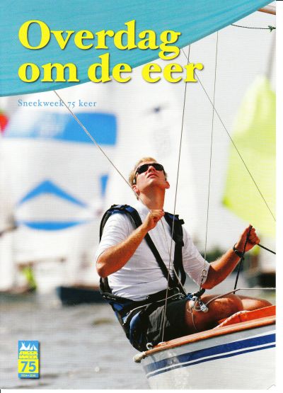 Oulopen saterdach kreech ik un útnoadeging fan de KWS, de Koninklijke Watersportvereniging Sneek, om op 2 júly de presentasy fan ut júbileumboek 75 jaar Sneekweek bij te woanen. Bij de útnoadeging sat ok un flyer met info over ut boek dat Peter van der Meeren ( prima keuze, omdat Van der Meeren self 30 Sneekweken ferslagen het foar de LC en un flotte pen fan skrieven het ) skreven het. De titel ontleende Van der Meeren an un útspraak dy't Reina Alberda, in 2006 overleden, oait deed: ' Overdag om de eer, 's avonds om de sfeer '. Moai dat de auteur op dizze wize de frou dy't un spilfunksy bekleed het in de òrganisasy fan de Sneekweek su eart. LC-spòrtsjoernalist Van der Meeren het ok ut skitterende júbileumboek fan Wit Zwart Sneek skreven en as dit júbileumboek krekt su moai is as dat fan Wee Zie Tes, dan krijt Sneek un fraai kadoatsje an de foaravend fan de 75ste Sneekweek. Ik hew der alle fertrouwen in dat dat ut gefal is. Hierbij al fast de coverfoto fan ut boek. Hierop is Valk-siler Freark Zandstra te bewònderen. Ut júbileumboek is fanou 3 júly te koop in Sneek bij Simon Watersport, Westers Nautic, Skipperland Watersport en ut Fries Scheepvaart Museum. In de foarferkoop ( tòt 25 júly ) betale je € 17,95 en dêrna € 19,95. Online bestelle kan ok : www.sneekweek.nl