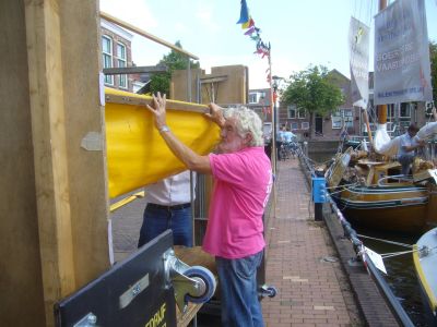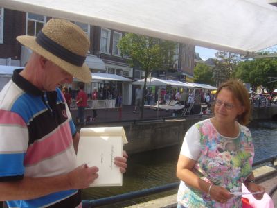 Nadat Harm met Van der Werf fan de Boat fan ut Jaar praten het, dy’t al un prachtech eareplakje an de foet fan de Waterpoart het, gaan we de Wonderbrugge over. Even kòrt overlech met Anne Silvius en Jan Bootsma, ok leden fan de floatskoukommissy. Jan Bootsma, ok un tòpregelneef, het ut nyt an tyd om lang te praten. Hij wil de dingen rúm fantefoaren klaar hewwe, niks an ut toefal over late.
