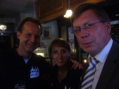 Bij Grand Café De Walrus kwamen an ut end fan de middach ferskillende sposoaren òftewel geldskieters bij mekaar. Forkje prikke, burreltsje drinke, kòrtom even netwerke. Ik had Kees Poiesz nòch noait in pak sien, mut even wenne. Mar ut stond y wel Kees. Gaast nòch wel achter dat shirtsje fan dy Unileverbobo ( we noemen hem Fred ) an! Beloofd is beloofd en ik hew un oalifantegeheugen!