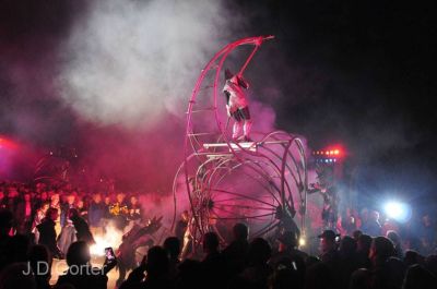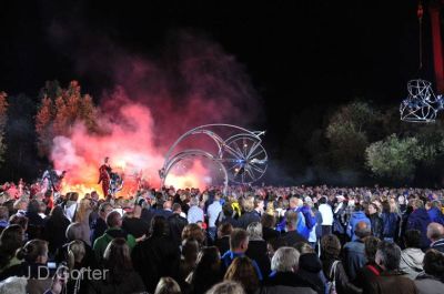 Kiek nou kan ik hier de sobistise resensent wel úthange, dy’t met un soad plak & knipwerk ( google is myn redder ! ) ut Close Act spektakelstuk MALAYA onder ut filearmes leit, mar dêr hew ik helemaal gyn nocht an. Liever myn eigen persoanleke impressy fan wat um gisteravend ouspeulde in de foartún bij oans in de straat. Ut begon gistermiddach al, toen ik fanút de Julianastraat un gigantise teleskoopkraan bewegen sach boven de Bòlserterwech. At ik dergeleke beelden sien, dan krij ik ut Mecanogefoël wear teruch! Uteraard had ik wel in de gaten dat der un straat ferderop druk oefend wurdde deur Close Act. In de namiddach dan ok naar ut parkearplak met de illústere naam Bòlserter Poart gaan. Dêr sach ik al dy artysten ( profesjonele & amateurs & frijwillegers ) druk doënde. Je foëlden de spanning. Moai! Om eksakt 22.00 uur ging ut dan los met Malaya. Dúzenden minsen met mij waren anwezech op ut desolate parkearterrein. Nee, de lokasy fyn ik niks. Dy mut mear in ut sentrum fan de stad, met op’e achtergroan moaie gevels en gebouwen. Alhoewel de groate treurwilg an de rane fan ut spoar in spòtlichten had wel wat. Fanou de earste oarferdovende klanken, ( onnoazel om flak foar un megaboks staan te gaan Van der Veer ! ) was ik in de besnijïng fan ut stuk. Alle sintúgen krije hun gerak, mar de ogen ut measte. De kostúms, de futuristise mobiles, de luchtopjekten, de indrukwekkende insekten, ut fuur en de kleurepracht. Wauwwww: Allemaal fan un overweldegende skoanhyd. De geografy, ut públyk dat kear op kear alle kanten opspat deur toedoën fan de steltlopers dy’t der infege. Hearlek man. Ik laat mij metfoere in un wonderleke Ying & Yang-weareld ( copyright Anske ! ) en foar ik ut in de gaten hew is ut spektakel foarbij. Later op bêd krij ik aparte surrealistise dromen fan núvere wezens dy’t ik sumar teugenkom op klaarlichte dach, in ut hartsje fan Sneek. Toen ik fanmòrren wakker wurdde opende ik myn mailboks en sach de moaie foto’s fan Jan Douwe Gorter. Soms is ut beeld fraaier as ut woard!