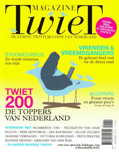 En wederom un prachtech Sinteklaaskadoatsje kregen: TWIET, de earste Twitterglossy fan Nederlaan. Staan prachtege artikels en interviews in ut tydskrift. Ok un stoomkursus twitteren. Un échte anrader foar lui dy't gebrúk makke fan dit sosiale medium! En dy binne der in Sneek nòch al wat!