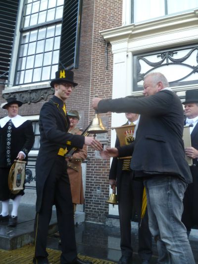 Met un daverend en bulderend haré haré is sukrekt de earste Sneker Stadsomroeper fan de 21ste eeuw los gaan! Jan van Omme één fan de òrganisatoaren fan de Winteredisy Lekker Sneek overhandegde de stadsomroepersbel ( 'de skille ' ) eksakt om 13.00 uur an Jan Sjoerd de Vries.