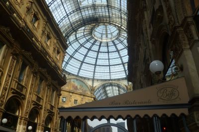Eén fan de moaiste besienswaardechheden in ut sentrum fan Milaan is tòch wel de histoarise winkelgalerij Vittorio Emanuele II dy’t tussen ut Piazza del Duoma en ut Piazza della Scala leit. Ut glazen koepeldak is werkelek heel indrukwekkend. In de galerij binne super-de-lúkse winkels, kafees, restaurantsjes en boekwinkels. Prachtech is ok de marmeren bestrating, met in ut midden fan de galerij de stier fan Milaan. At je ut beest op syn kloaten staan gaan, skynt ut geluk te brengen. Ik hew ut nyt deen, mar an ut kúltsje in ut marmeren skroatum fan ut beest was dúdelek te sien dat der nòch al wat minsen bijgelovech binne.