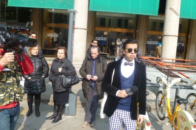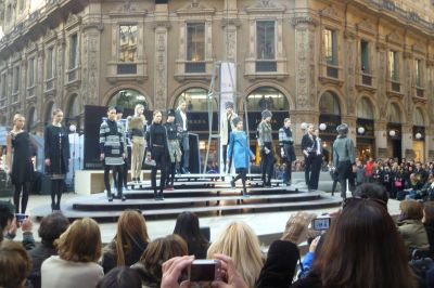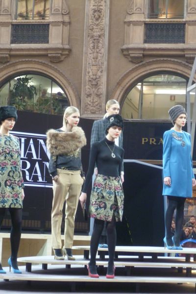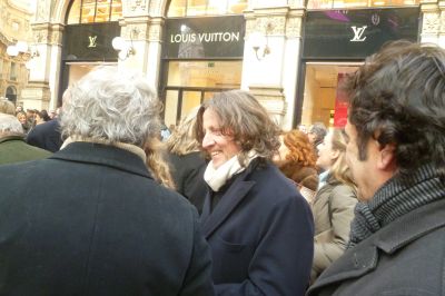 Milaan is un ander woard foar Moadestad! We troffen ut dat woënsdach de Fashion Week in Milaan fan start ging. Nou kan ut ok bêst weze dat alle 52 weken fan ut jaar dy naam drage, mar feit was wel dat de catwalk in Milaan overdúdelek anwezech was en dat al dy bloëdmoaie frouwen en matsjoo-mantsjes overdúdelek anwezech waren in de slachskadúw fan de Milanese Dom. Ut is goed beskoud ut absolúte niks, de hele dach moai lope te wezen, mar ut het úteraard ok wel wat. Ik wú dy frouwen mòrrensfroech om un uur òf seuven ok wel us fan dichtbij bekieke, miskyn falt ut dan wel swaar teugen. Sittend op un sonovergoaten terras, ut was 14 graden met un hearlek foarjaarssontsje, hew ik mij de ogen útkeken naar ekstravagante types. Su lope der allemaal in ut wild om. Un moadesjo in hartsje Milano is simpelwech kultuursnúve fan un andere òrde as befoarbeld Amsterdam. Miskyn hew ik wel weareldberoemde ontwerpers en moade-lui sien, allienech ik ken se nyt, mar an de paparazzi te sien waren der heel wat beroemheden op’e been! Hier un antal foto’s: