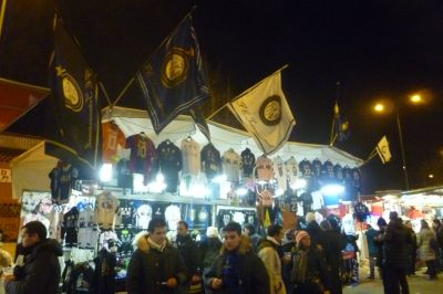 De trouwe bloglezers hadden ut wel in de gaten dat ik even un paar dagen buten de deur weest bin, naar Milaan tegare met myn soan. Leek mij nyt su ferstandech om dat nou ok fantefoaren allemaal op de site te setten. De kòp sit mij nòch grôtfol met alle indrukken dy’t ik in weareldstad Milaan opdeen hew. Hoofddoël fan oans drydaagse trip was de CL-wedstryd tussen Inter Milan en Bayern München in ut Stadio Giuseppe Meazza. Ut het un ferpletternde indruk op mij maakt, kolosaal wat un megagroat stadion! Omdat ik tòch al un man bin fan de raanferskynsels om ut foetballen heen, bin ik dêr in Milaan folledech an myn trekken komen. We saten flak boven de ring dêr’t de fanatykste Inter súppòrters sitte, daanse en springe. Dat ultra-fak gaat werklek un paar uur onophoudelek tekear met gesang ( ut Italiaanse fòlksliet !! ) en geskreeuw. Gyn moment wurdt Inter in de steek laten, de ploech het de onfoarwaardeleke steun fan dizze súppòrters. De Italianen dy’t wij teugen kwamen waren trouwens lyrys over Sneijder dy’t se dêr allemaal Wesley noeme. Over Robben waren se woënsdach wat minder entûsiast, alhoewel’t se earlek toegaven dat de Groaninger ok tòt de bútenkategoary in foetballaan behoart. En Robben was werklek, seker in de tweede helt, un klasse apart. Ondanks de nederlaach in de laaste minúten, Dútser kon ut amper, bleven de súppòrters achter hun Inter staan. Om in oans fak te kommen moesten we fia un betonnen wokkel-toaren omhooch, at je dan eenkear boven in ut stadion staan hewwe je un fòrstelek útsicht, allemaal heel imponearend. Middachs foarou an de wedstryd waren ut met name de súppòrters fan Bayern dy’t ut stadsbeeld fan Milaan bepaalden in hun Lederhosen. Op ut Domplein hing un geweldege foetbalsfear en konfrontasy’s bleven út. Der was dan ok aardech wat ME op’e been. Inter súppòrters mutte om mear as één reden niks fan malloat Berlusconi hewwe, wat dat betreft sat ik dus goëd!