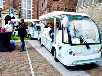 Dit jaar echter gaan de shuttles, behoudens deze Sneekweek, niet meer in actie komen omdat ze op zijn vroegst in oktober kunnen worden geleverd. Er werden tijdens Lekker Sneek een paar ritjes met de elektrische wagentjes gemaakt. De belangstelling was groot en de reacties over de hele linie enthousiast.