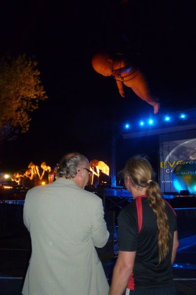 De minsen dy’t gisteravend in hun achtertúntsje fan de Waterhoenstraat saten met un glaske bier òf wyn onder haanbereik, mutte tussen tien en elf uur even docht hewwe ‘ho jonges gyn alkohol mear’. Want ut was súver hallusinearend wat um boven ut parkearplak an de Bòlsterwech ouspeulde. Nou us gyn overfliegende flearmúzen, mar wòndermoaie kreasy’s fan Corpus Acrobatics, dy’t druk an ut repetearen waren foar de foarstelling fan fanavend. Diskear de múzyk nyt op ut folúme fan ‘oaren totall los’ su as oulopen saterdachavend bij ut Pink Projekt, mar indrukwekkende filmúzyk dy’t op mij weldadech overkwam. Wat un prachtavend kreech ik sumar in de skoat wurpen, om met nòch un antal minsen in alle rust fan dizze deurloop te genieten. Un reis deur de tied an de haan fan Darwin, su sú’k de foarstelling in één sin samenfatte kanne. Mar ut is feul mear as allienech ut ferhaal fan Darwin’s evolúsyteory. Ut is acrobatic fan un ongekende skoanheid, un sierlekheid fan daansers en daanseressen om de fingers bij ou te likken. Wat foëlde ik mij gisteravend un stieve hark toe ik al akrobaten over ut groate poadium bewegen sach. Wat un elegaansy en souplesse! En wat fraaie fideokunst ok! Mar ik hou op, want ik fanavend wil ik der wear naar toe, at de artysten ok nòch hun moaie klearen an hewwe. Mòrren skrief ik dan wel mear over myn indrukken fan dit enòrme spektakel. Un absolúte anrader om hier fanavend bij te weze. Ut programma begint om 20.00 uur. Hierbij al fast un paar foto’s.