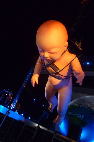 Selden sal teater-en festivaldirekteur Ben van der Knaap su faak op Buienradar punt en el keken hewwe. Mar je konnen gister nòch su faak un blik op de radarbeelden kiek, Pluvius beskikte. Toen dan om even over tienen Van der Knaap met wit regenpetsje op ut groate poadium an de Bòlserter Poart ferskeen hield ut públyk even de adem in: sú ut hele spektakel dan tòch nòch oulast wurde? Gelukkech nyt! In un enigssins ouslankte fòrm ging de hele foarstelling Evoltion fan Corpus Acrobatics ‘ gewoan ’ deur. Allienech de artysten en ut handsjefol minsen dy’t de avens dêrfoar de generale repetisy metmaakt hadden wisten wat deur toedoën fan de regenfal skrapt was: de acts op de catwalk! Wat overbleef was un optreden fan un ongekende skoanheid. In één woard ADEMBENEMEND! Ut ferhaal fan Darwin syn evolúsyteory kreech op ferbluffende wize syn gerak op ut poadium in de fòrm fan akrobatyk en fideokeunst. Nòch noait earder trad Corpus op in de bútenlucht, mar ut mut foar de speulers ok un enòrme kickervaring weest hewwe. Selden su’n lichaamsbehearsing sien fan acrobaten dy’t alles út de kast haalden om de teory fan Darwin teatraal foar ut foetlicht te brengen. Letterlek foar ut licht, want de lichtsjo maakt un essensjeel onderdeel út fan ut geheel. Prachtech hoe’t de skadúwbeelden fan de acrobaten projekteard wurden op ut inmêns groate fideoskerm. De choreografieën liepen as un tierelier, des te knapper at je bedenke dat de artysten ongetwifeld last had hewwe fan ut seepgladde poadium. Terecht dêrom de anpassing om nyt op de catwalk te aktearen! Adembenemd is één fan de súperlatieven dy’t ik hier al brúkte mar ok de húmòr ontbrak gisteravend nyt, seker in de sêne met de apen! De ouslúter met de gigantys groate pop ( ‘ ut is un meiske! ’ ) bengelend boven ut parkearplak het ongetwifeld un soad indruk op ut públyk maakt, sien ut langdurege applaus fan de paar dúzend anwezegen. Dit optreden fan Corpus Acrobatics in Sneek sal mij nòch lang bij blieve, sterkernòch ut is ok un prachtege refleksy op hoe’t wij as minsen met de skepping omgaan. At je ut nou besien út de teory fan Charles Darwin òf watfoar religy dan ok.