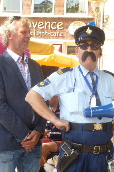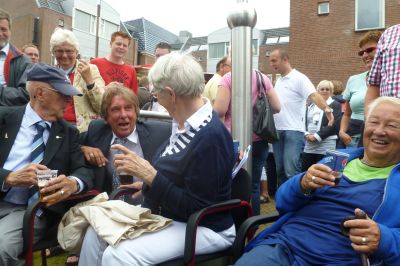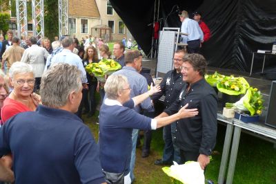 Burgemeester Hayo Apotheker, fanmiddach prima op dreef, was laaiend entûsiast en onder de indruk over de spontane huldeblyk fan al dy Snekers in ' syn ' tún.