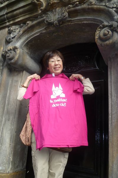 Su metien om 10.00 uur sal Maria Poiesz, foarsitter fan de stichting, un Beltsjebloemkleurech Snitter T-shirt in ontfangst nimme foar de kamera's fan GPTV.