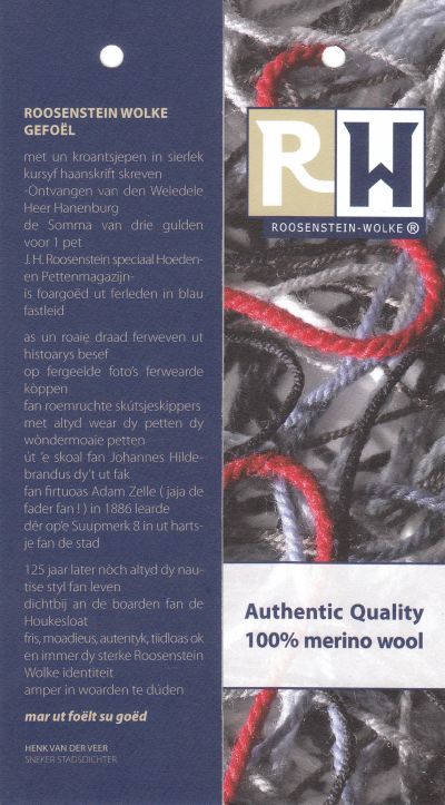 Na alle drukte fan de oulopen dagen, un hearleke ja súver weldadege rustege sundach in augustus met ok nòch us angenaam wear. Na al ut blog-en snittergeweld ( selden su’n eksplosy fan públisiteit feroarsaakt deur één woard ! ) wear ut ritme fan alle dach fine, wat dan ok nòch wear lukt. De kòp blieft altyd deurdraaien, gelukkech mar, met allemaal moaie regels woarden en faak ok nòch us poëzy. Earder dit jaar blogde ik jum al dat ik un fers skreven had foar ut bedrief fan Liseth Roostenstein. Dat fers is prachtech fòrmgeven deur Paul van Goor en hangt bij Roosenstein & Wolke an de Ouwe Toppenhústerwech. Mar un fers wil de weareld in, onder de minsen. Dat doët Liseth op un deurdachte en orizjinel;e manier, sonder onsin ok, in de taal fan har foarouders, fan de stad! An de produkten fan Roosenstein-Wolke hange labeltsjes en op dy kaartsjes is ut fers oudrukt. Su sien ik ut graach! Ondertussen werke Paul van Goor en ik al wear druk an andere produkten en projekten. Ut gaat allemaal búten ut literêre sirkwy om, mar myn fersen fine wel degelek hun bestemming: ik skrief foar minsen! Ut Snekers faart der wel bij, mar de taal, ut dialekt is allienech un instrúment. Dêr’t steen en been klaagd wurdt deur dichters in Fryslaan dat hun werk amper òf nyt mear útgeven wurdt, gaan Paul en ik lekker deur. Wij hewwe nyt eens tyd om over de útgave fan un bundel òf wat foar tradisjonele fòrm dan ok te praten.