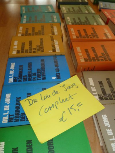 Pure hebsucht òf om myn part un fòrm fan bibliofily dat is ut, anders kan ik ut nyt benoeme. Mar toen ik eargister over de Kofferbakmerk fan Sint Maartszee slenterde en in twee ouwe doazen ut komplete levenswerk fan Dr. Lou de Jong lêgen sach kon ik mij nyt bedwinge. ‘ Dr. Lou de Jong compleet € 15,= ’ ston der met groëne filstift delkwatteld op un geel stukje papier. Alle 29 delen fan ‘ Het Koninkrijk Der Nederlanden ’ foar 15 eury’s! Ik had ok nòch de moëd, ut lef om brútaal tien euro te bieden. ‘ Nee’, sei de koopman, ‘ je mag de hele handel voor 13 euro meenemen en dan doe ik ze ook nog in een oude sporttas, zodat het wat gemakkelijk te dragen is! ’ Even later liep ik tegare met S. over ut parkearplak fan De Goudvis, met ut levenswerk fan Dr. Lou moai tussen oans in. Ik lei S. út dat dit tòch écht ut standerdwerk over de Tweede Weareldoarlòch was wat wij tussen oans in metseulden. Hij sach mij wat meewarech an en berekende dat ik nòch nyt eens twee kwartsjes ut deel delteld had foar dizze bysondere boeken. Op syn fraach ‘ga jet het nu ook lezen ’, sach ik hem op myn beurt un bitsje sneu an en ik antwoardde ‘dat weet ik nòch nyt, ik bin earst blij dat ik dizze boeken hew, gyn geld man…’ Nou twee dagen later fraach ik mij ou wêr’t ik de boeken delsette mut, want dat dizze delen un eareplakje krije salle in myn tòch al ryk fulde boekekamer is dúdelek. En leze? Nee, at ik infòrmasy noadech hew over de Tweede Weareldoarlòch dan google ik wel, dêr hew ik Dr. Lou nyt mear bij noadech. Mar om hem, de groate Dr. Lou de Jong, dêr nou moedersiel op de kofferbak fan SMZ achter te laten ging mij un bitsje te fer. Nòch us noem ut mar un respektfolle ankoop ingeven deur hebsucht en un lichte fòrm fan bibliofily.