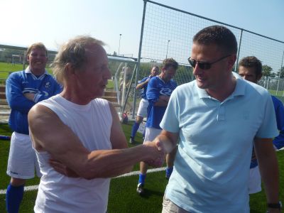 Fanmòrren su stief as un ouwe deur! Last fan spieren wêr’t ik de naam nyt fan ken, mar dy’t gistermiddach un opsoademieter had hewwe tidens ut earste pòtsje foetbal fan ut seizoën 2011/2012. Foël mij un befoarrecht man dat ik gister wear an un nieuwe jaargang foetballerij beginne mocht. Ut wurdde un hele aardege wedstryd teugen un Al(d) Stars team fan IJVC. We speulden dizze partij ter eare fan ut ouskeid fan goold old Durk de Jong en ‘ koots ’ Theo Hoekstra. We speulden dizze wedstryd op ut gloëdnieuwe keunstgrasfeld fan IJVC. We hadden hiermet de primeur, want pas op 27 september gaat ut feld offisjeel open met un wedstryd tussen IJVC en Harkemase Boys. Sukke wedstriden hewwe wat, seker ut raangebeuren dat belangriker is as de útslach. ‘Jum hewwe seker ferloaren’, twitterde un bijdehande Snitteraar toen ik dizze wiesheid gistermiddach op de digtale sneldyk plaatste. Inderdaad we kregen klop, mar su’ k sei de raanferskynsels binne fan impòrtant belang. Durk de Jong, un freeslek irritante teugestander, dêr’t ik jaren teugen foetbald hew. Un súger, un skopper soms ok. Mar bovenal un kearel dy’t altyd winne wú en wêr’t je na ouloop fan de wedstryd altyd gesellech met prate konnen. Pesoanlek hew ik noait problemen met Durk had, we eamelden in ut feld allienech un soad teugen mekaar. Wat dat betreft had Durk wel O.N.S.-trekjes…