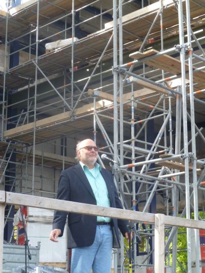 Nou’t dat stee definityf finito is deur onnoazelheid in ut kwadraat is der un ander plak dat heel geskikt is: Eén fan de MUREN fan ut nieuwe TEATER an de Westersingel!! Gisteravend belde direkteur Ben van der Knaap met dizze suggesty! Ik fyn dat un grandioas plak, hier komme Snekers en Súdwesthoekers aansens tegare, ut TEATER is un ferhaleplak bij útsek! Hier mach om myn part ut Sneker Muurke in folle gloary heropent wurde! Un simpel houten KNAAPKE ( met un fette knipooch naar de teaterdirekteur foar syn fraaie oplossing ) fan C. & A. mach dêr nyt ontbreke!