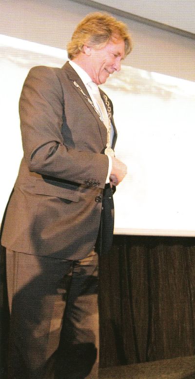 * Drs. M. Offinga , wethouwer, komt met nieuwe ( ? ) amstketting foar Apotheker!