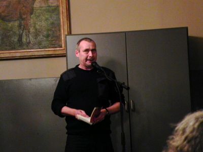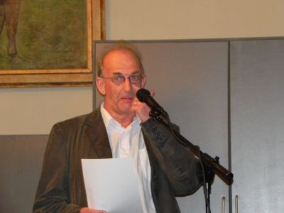 Cor van der Wal draag foar út de bundel Kristus Pavlov