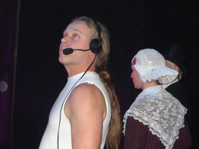 Met un “ spuug ze in de bek! ” fòlgd deur ut wat klassiekere “ toi-toi-toi ”, stuurde Ben van de Knaap gisteravend de speulers fan ut renomearde akrobatise teatergeselskap Corpus Acrobatics de Bühne op fan ‘syn teater Sneek’. Wat un aparte mar tòch ok bysondere openingsfoarstelling hew ik gister metmaakt. Apart in de sin fan de lokasy, namelek dy fanachter de koulissen, omdat ik un rol had in de foarstelling.