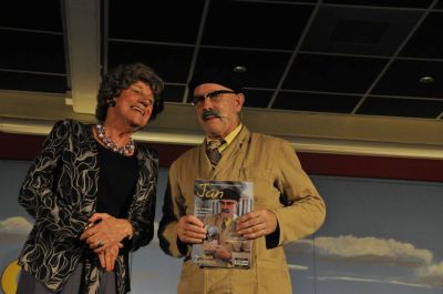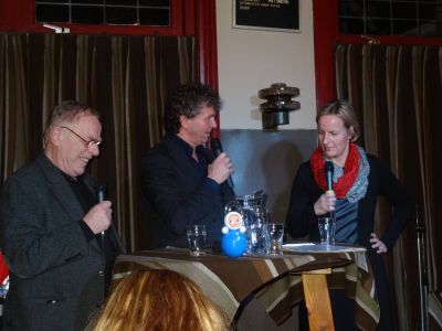 Akteur Peter Tuinman het gyn ooch foar twee Sneker bestuurders, Betske Salverda en wethouwer Gea Akkerman.