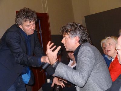 Sietse de Vries, LC sjoernalist in gesprek met akteur Peter Tuinman