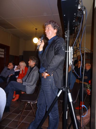 Flak foar de openingsfoarstelling is Ben van der Knaap nòch anwezech om iedereen súkses te wênsen. Vincent Michels al in opperste konsentrasy.