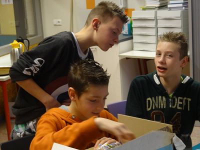 Hoe krije je ADHD'ers ( ' ja, nou én ? ' )nòch drukker as druk? Simpel: Sinteklaas fiere! En dat hewwe we fandaach dus deen. Ik mach wel sêge met un prachtech pakjesfeest op skoal. In de eigen groep, prima pedagogys klimaat, en in de kantine, dêr't ok al un útlaten sfear heerste! Ut sal je mar overkomme dat Sinteklaas met un Renaultsje de skoal binnen tuffen komt. Ut gebeurde fanmòrren bij oans op De Diken. Alle kearen staan ik wear ferwònderd naar oans learlingen te kieken en ik sêch ut de ouders fan Dik Trom na: ut binne bysondere kyndes en dat binne se! Pure rykdom at je kyndes feesten leare, se wurde der dus rikere minsen fan. En wat un kreativiteit in al dy surprises! Sjapoo!!