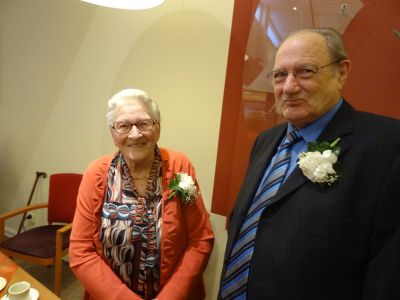 Altyd persoanlek, mar noait ( te ) privé, is myn adagium foar ut weblog. Soms balansear ik op de grêns. Fandaach un foto fan oans ouwe buurlui út'e Hommerts. Sikke en Hieke Hoekstra. Poer- en de poerbêste buren hewwe we dêr an had. Dat ok nyt mear as logys dat we fanmiddach op hun diamanten húwleksfeest in Talmastate weest hewwe. Sestech jaar húwelekse trou, dan kanne je rekene op de komst fan de burgemeester. Hayo Apotheker komt maandach bij Sikke & Hieke. De CvdK, J. Jorritsma, had ut paar al un brief stuurd. Moai om te sien hoe't Sikke & Hieke na al dy jaren nòch un gelukkech echtpaar binne. Fan harte!!
