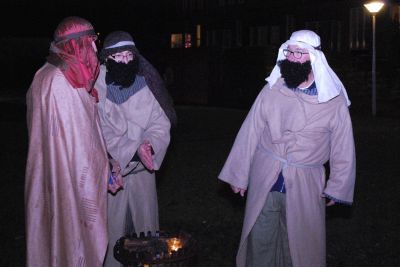 Un kerstfiering sonder kerkeleke muren, dat spreekt mij wel an! De pastor herinnerde ok nòch even an ut foarfoegsel SINT foar de naam Antonius en legitimearde op dizze wize de RK wurtels fan ut sikenhús. De heilege kommuny wurdde ferfòlgens fierd foar wie't dat wúden.