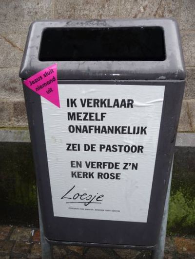 Moai fon ik dat ds. Poelman bij ut Ere Zij God singen an de anwezegen froech om sitten te bliëven, as solidariteitsgedachte foar de pasjenten dy't op un sikenhúsbêd de diënst bij woanden.