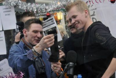 Jan Visser en Reiny Bourgonje wisten fanmiddach even foar half dry nyt wat hun overkwam toen Ben van der Knaap ut echtpaar naar boven riep in de foyer fan Teater Sneek. Ut niks fermoedende stel kreech út hannen fan de Sneker teaterdirekteur 20 frijkaarten foar de fòlgende teaterfoarstellingen in de kultuurtempel fan Sneek. Jan Visser en Reiny Bourgonije waren offisjeel de twintechdúzendste ( en earste...) besoekers in twee maanden tiid an ut teater. De felisitasy's en de overhandeging fan de teaterkaartsjes gingen foaraf an ut Top 2000 Live Band.