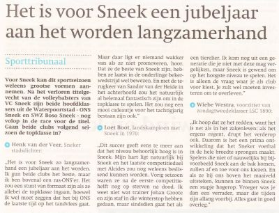 Sukrekt wear thús na ut bijwoanen fan de Koaninkleke Lintsjeregen in de Groate Kerk fan Sneek. Der waren mar liefst 14 Koaninkleke Onderskeidingen foar inwoaners fan de gemeente SWF. Onder de gedekorearden waren ok de Snekers Klaas Visser en Hotse van Bekkem. Beide mannen hewwe un fraaie staat fan ( frijwillegers-) diënst: