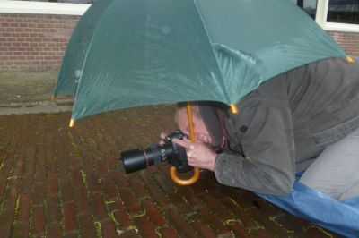 Om jum un letterlek beeld te geven hoe serieus wij ut projekt benadere laat ik hierbij twee foto's sien dy't ik krekt skoaten hew fan Paul van Goor. Paul maakt foto's fan de straatstienen fan de Kòrte Feemerkstraat. Dizze straat komt foar in een fan de fersen dy't ik skreven hew. Ut sú heel maklek weze om un antal ouwe foto's út ut omfangrike argyf fan Paul van Goor te nimme en dy as illústrasy te brúken. Mar dat foëlt dus nyt goëd, is nyt passend, fandêr wachte op ut moment dat ut geskikt wear is om de betreffende foto te maken.